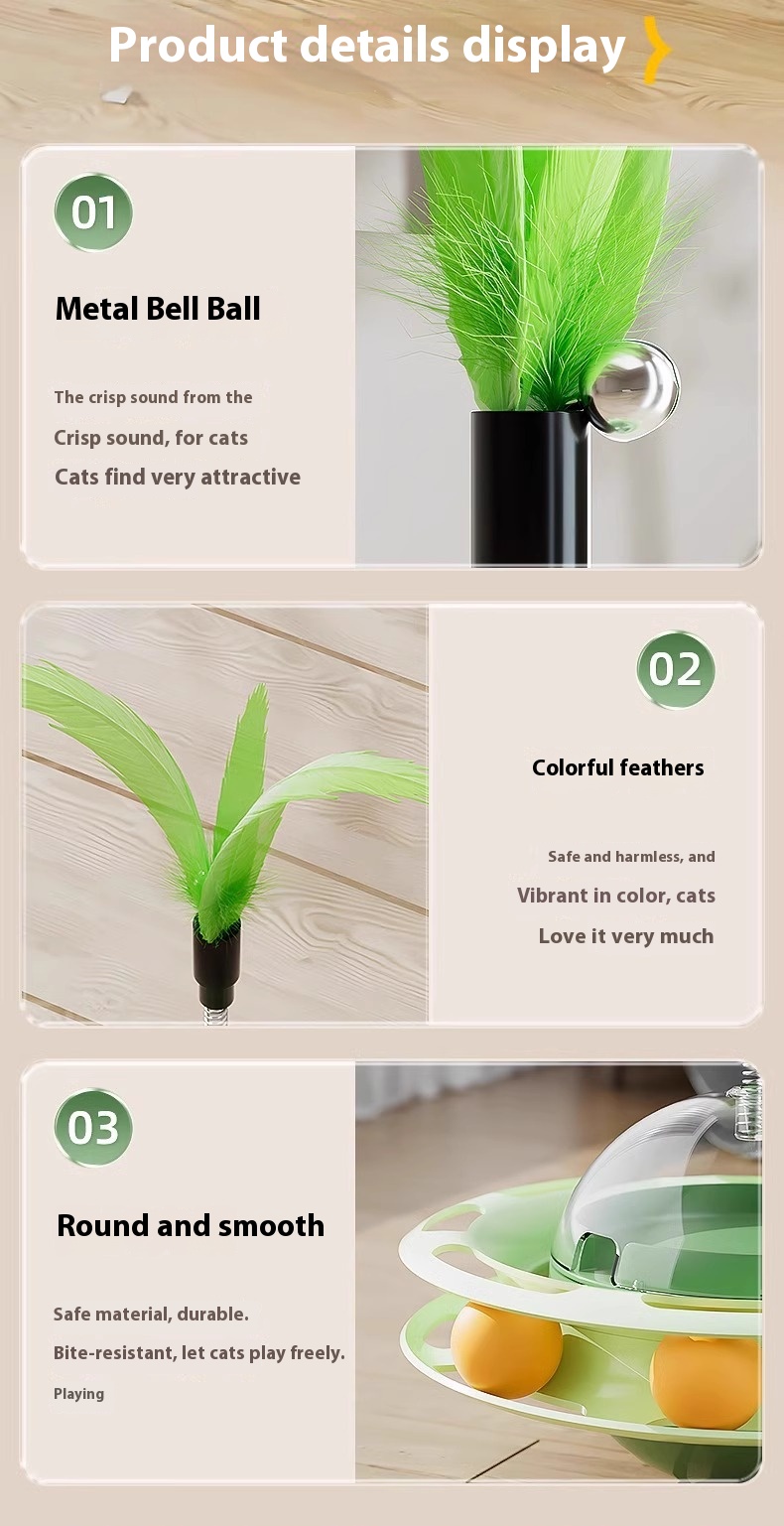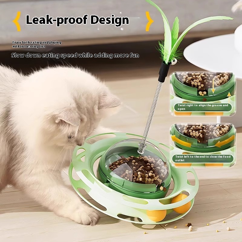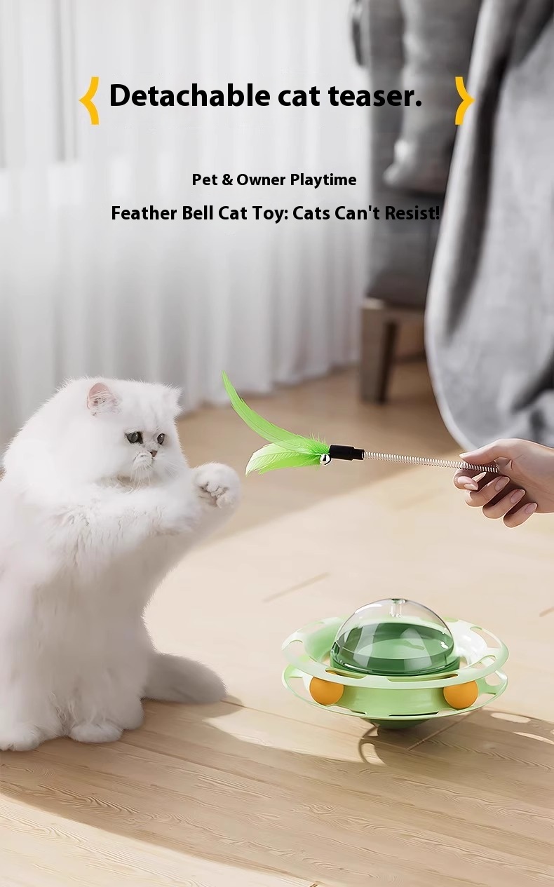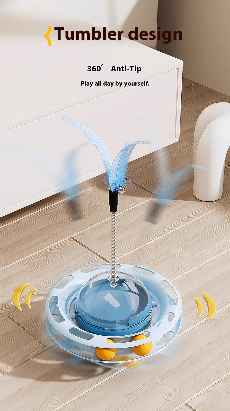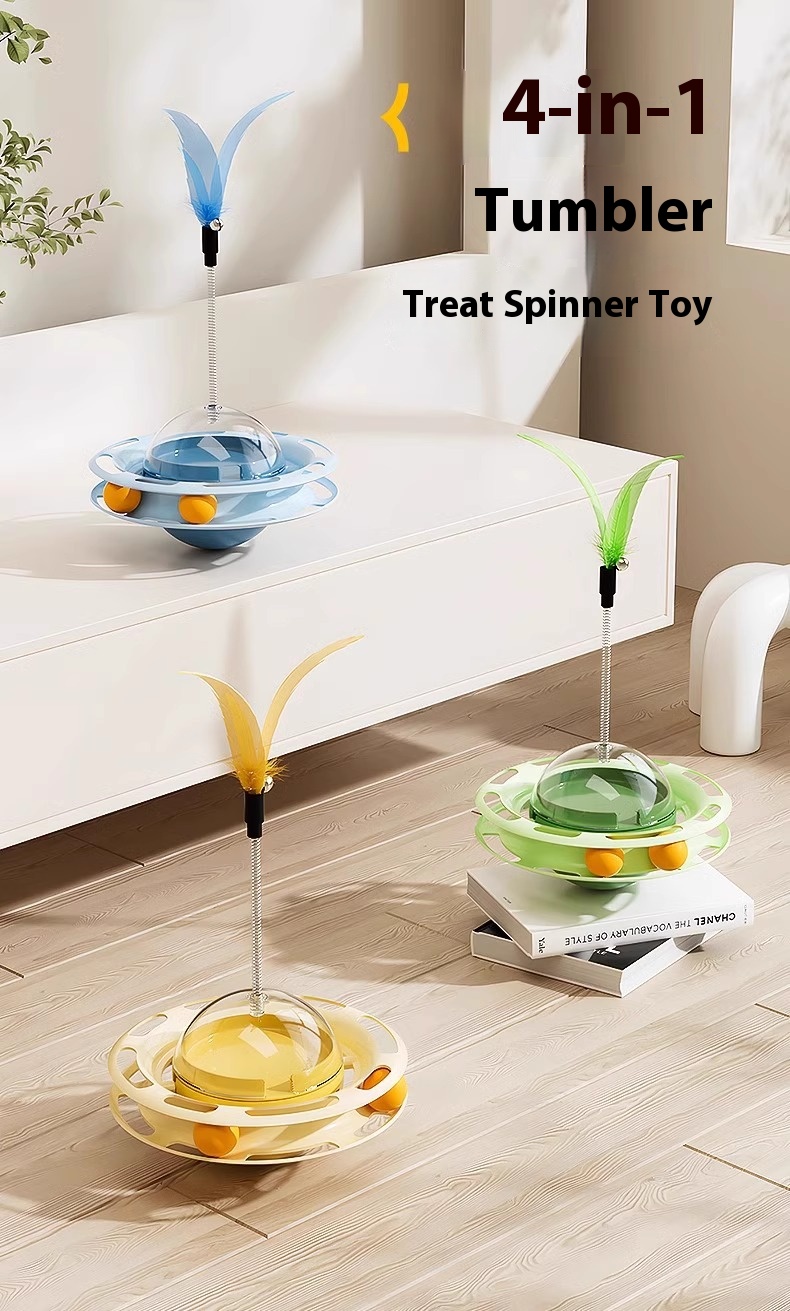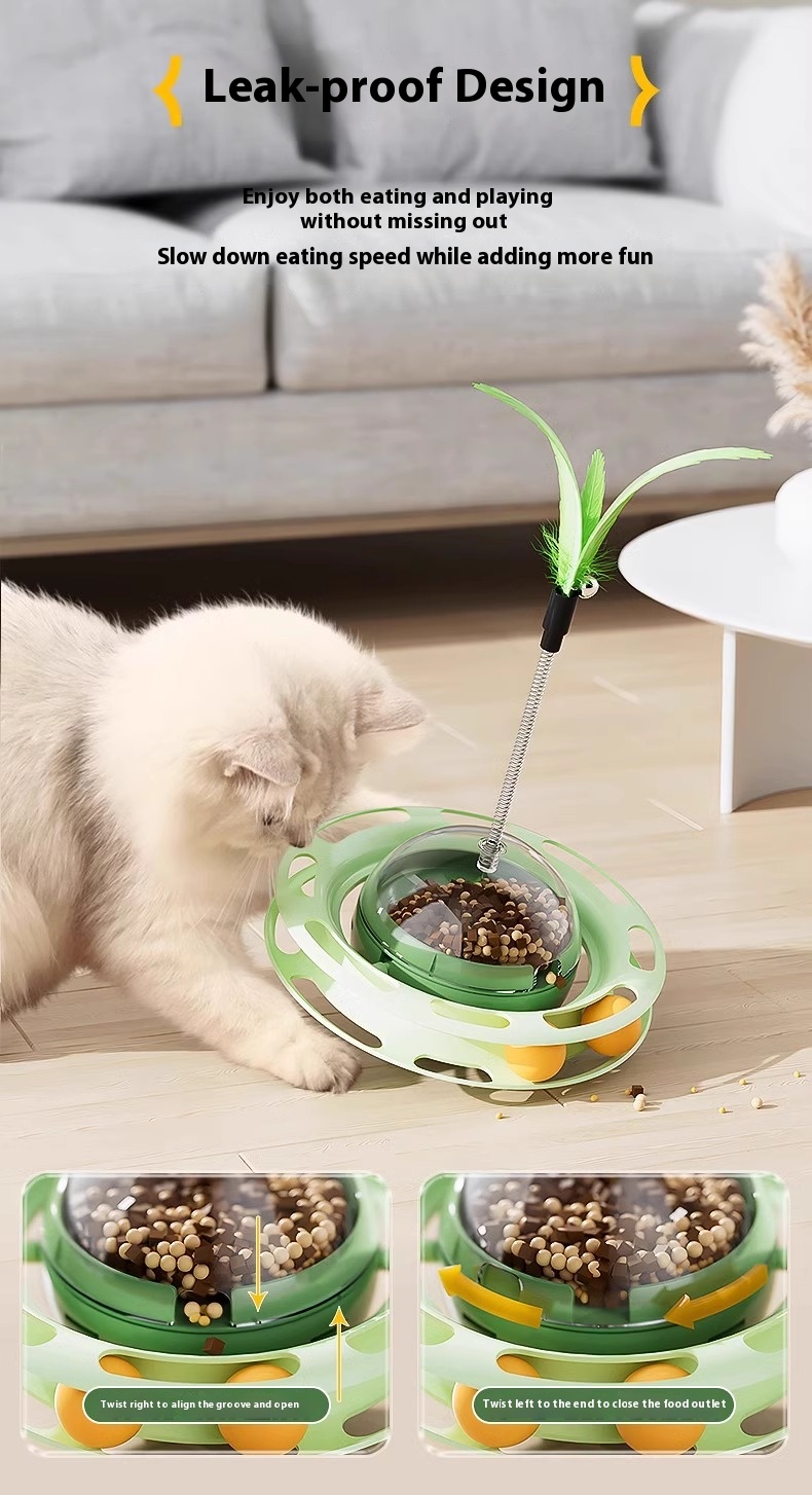 Cat Self-Play Toys – Fun Stick, Tumbler Turntable, Food-Dispensing