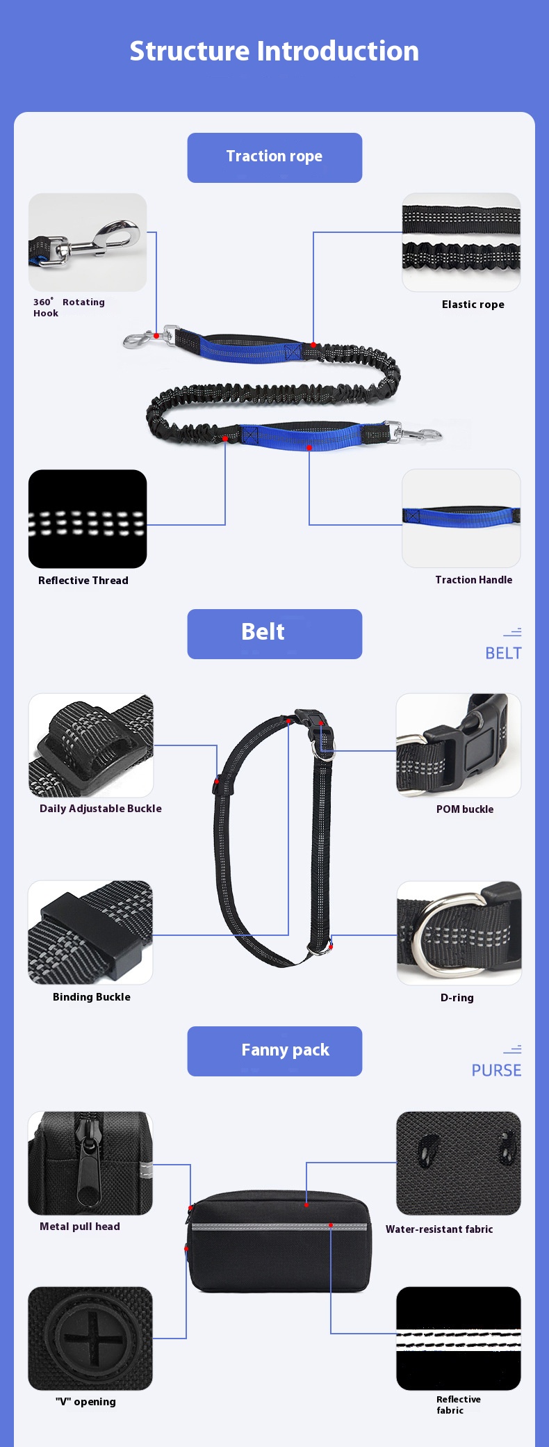 Multi-Functional Waist Bag Pet Set Walking Dog Running Nylon Reflective Dog Retractable Leash