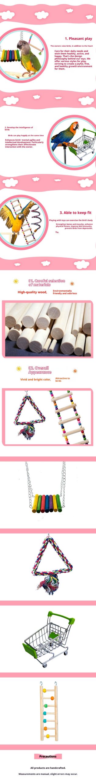 Colored bead rings, Small size swing, Large swing, Five-section wooden ladder, Seven wooden ladder, Nine wooden ladder, Five-section ladder, Seven ladder, Ten ladder, Twelve ladder, Small size climbing rope, Triangle cotton rope rings, 62CM any cotton rope, Triangle branch grinding claw stick random color, Five-section cuttlefish bone string, Twelve-section cuttlefish bone string, 40cm solid wood soft ladder, 80cm solid wood soft ladder, Triangle solid wood platform, Small size solid wood platform 15 * 8cm, Large solid wood platform 19 * 10cm, Rainbow suspension bridge, Log suspension bridge, Double rod sling toy, 30cm any rope, Small size cotton rope rings [Green]], Small size cotton rope rings [white]], Small size cotton rope rings [yellow]], Small size cotton rope rings [pink]], Large cotton rope rings [Green]], Large cotton rope rings [white]], Large cotton rope rings [yellow]], Large cotton rope rings [pink]], Triangle cotton rope rings [Green]], Triangle cotton rope rings [white]], Triangle cotton rope rings [yellow]], Triangle cotton rope rings [pink]], New Frosted ladder, N-5505 climbing rope [Green one meter]], N-5505 climbing rope [yellow one meter]], N-5505 climbing rope [pink m]], N-5505 climbing rope [Green 1.5 m]], N-5505 climbing rope [yellow 1.5 m]], N-5505 climbing rope [pink 1.5 m]], C66 triangle platform swing suit, V33 platform swing suit, D—1 cuttlefish bone string [three-piece version]], D—1 cuttlefish bone string [five-grain version]], D—1 cuttlefish bone string [eight-grain version]], D—1 cuttlefish bone string [twelve tablets version]]