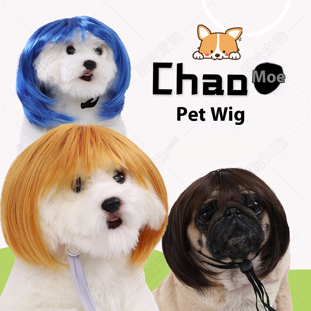 Pet Bobo Wig with Bangs – Cute Fashion Dog Hair Accessory