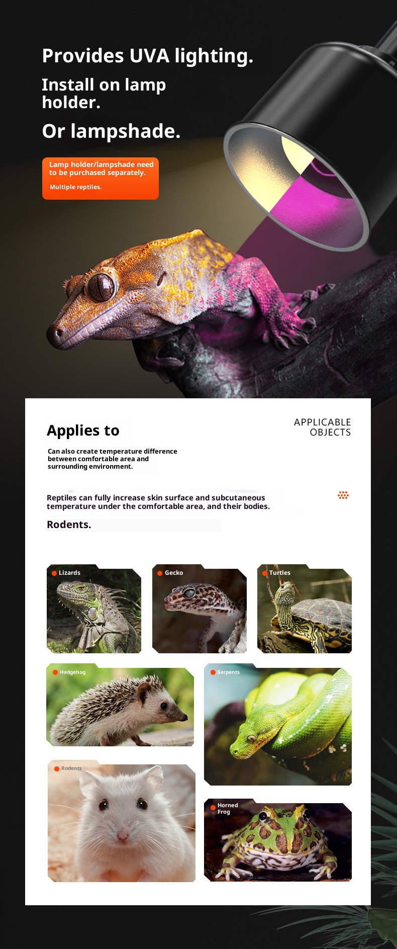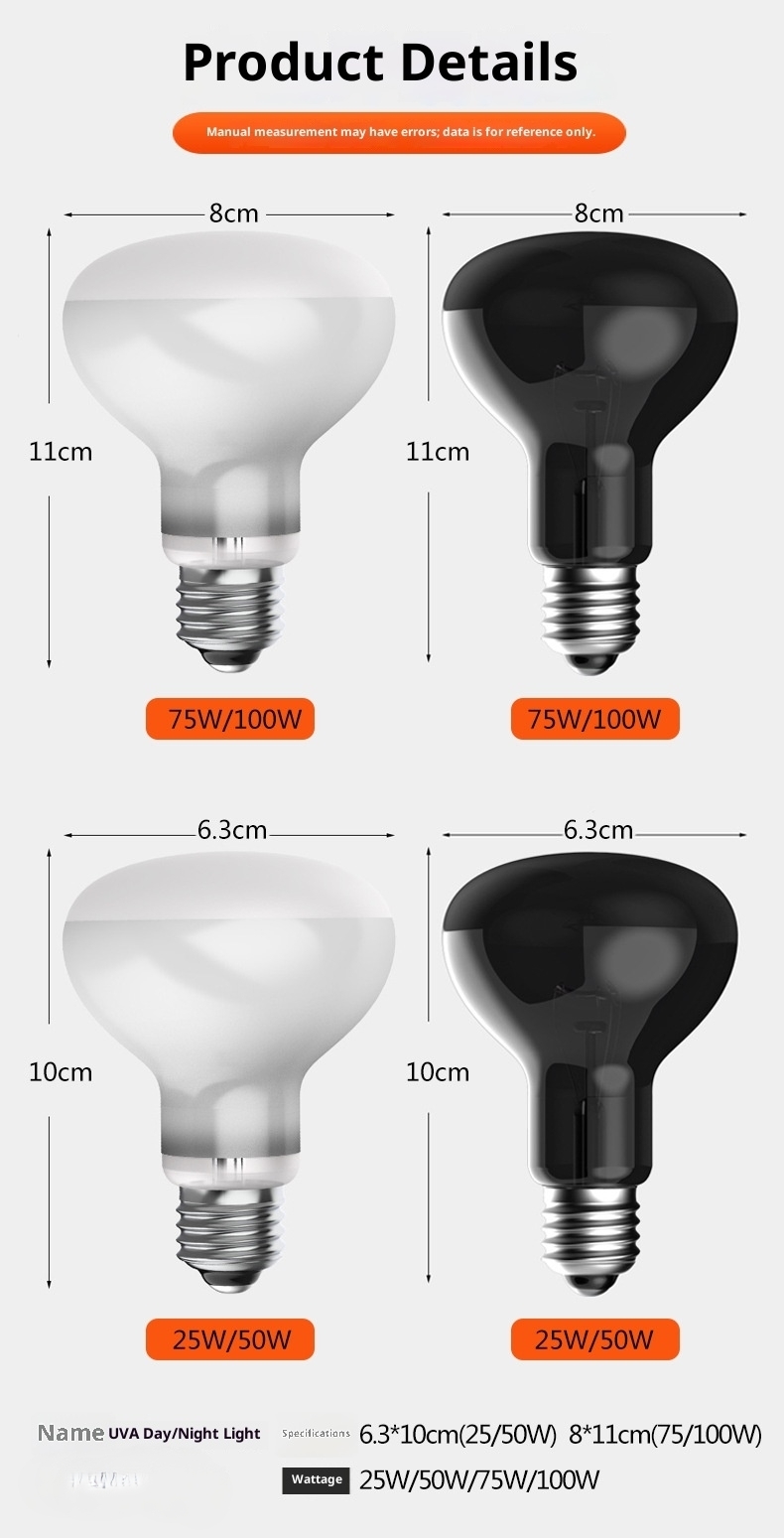 | Specifications | Daylight lamp 220v 25w (domestic, european), Daylight lamp 220v 50w (domestic, european), Daylight lamp 220v 75w (domestic, european), Daylight lamp 220v 100w (domestic, european), Daylight lamp 110v 25w (usa, japan), Daylight lamp 110v 50w (usa, japan), Daylight lamp 110v 75w (usa, japan), Daylight lamp 110v 100w (usa, japan), Night light 220v 25w (domestic, european), Night light 220v 50w (domestic, european), Night light 220v 75w (domestic, european), Night light 220v 100w (domestic, european), Night light 110v 25w (us, japan), Night light 110v 50w (us, japan), Night light 110v 75w (us, japan), Night light 110v 100w (us, japan), Infrared lamp 220v 25w (domestic, european), Infrared lamp 220v 50w (domestic, european), Infrared lamp 220v 75w (domestic, european), Infrared lamp 220v 100w (domestic, european), Infrared lamp 110v 25w (usa, japan), Infrared lamp 110v 50w (usa, japan), Infrared lamp 110v 75w (usa, japan), Infrared lamp 110v 100w (usa, japan) |